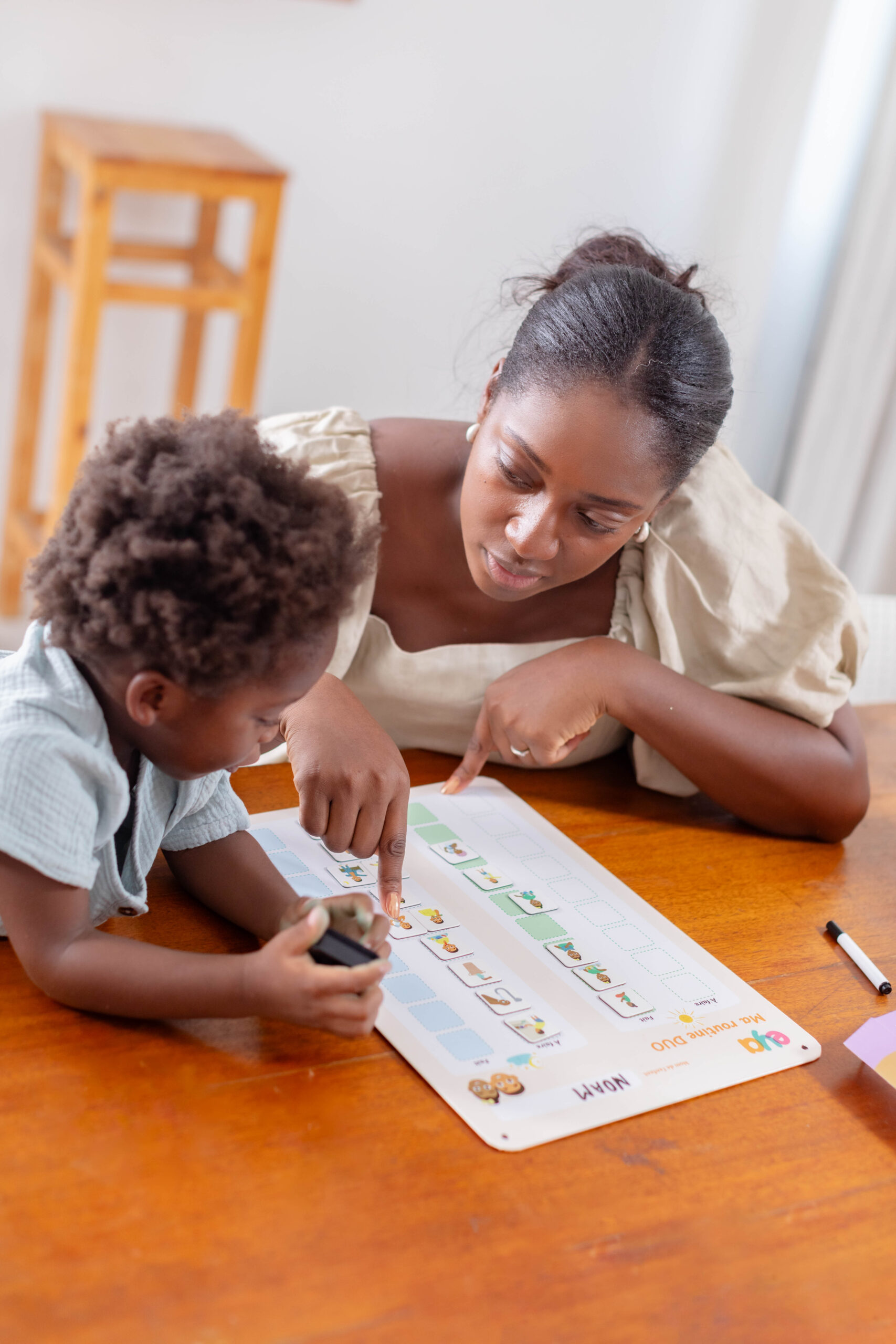 Ce tableau a été conçu pour aider votre enfant de plus de 3 ans à visualiser et suivre ses tâches quotidiennes, afin de favoriser son autonomie et sa responsabilisation. Simple, intuitif et coloré, le tableau regroupe les rangées des routines matin et soir. Après avoir effectué une tâche, l’enfant devra déplacer les magnets de la colonne <<À faire>> vers la colonne <<Fait>>, pour chaque moment de la journée.